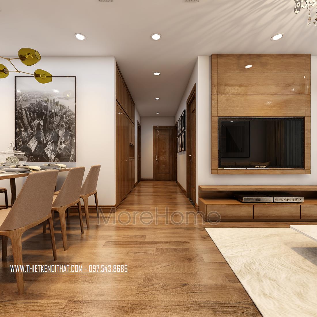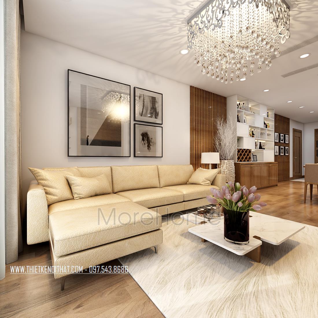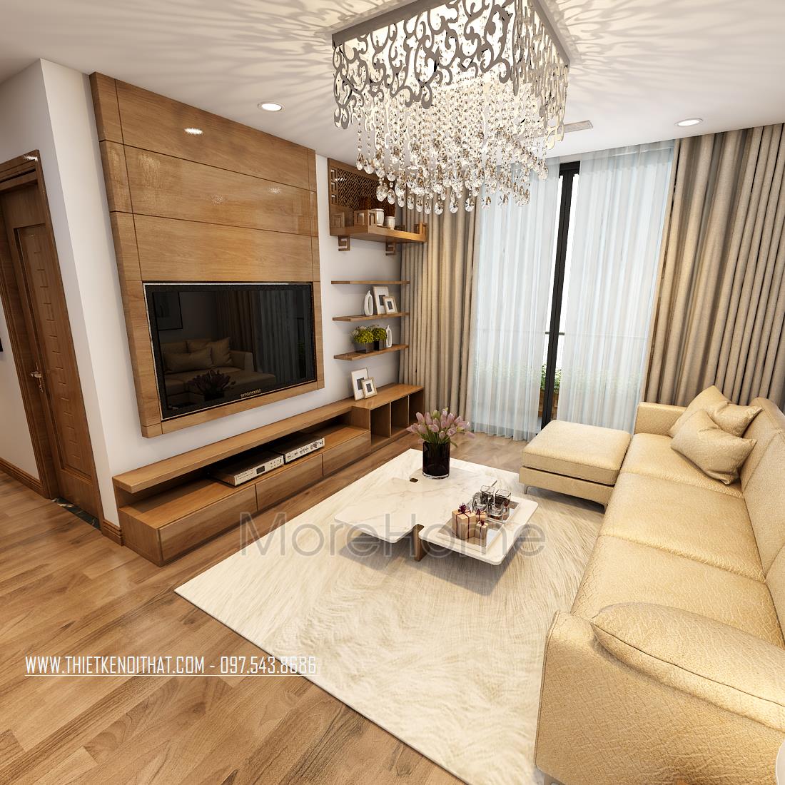 Bằng việc ứng dụng thiết kế phong cách hiện đại, trẻ trung, ấn tượng, căn chung cư Ngoại Giao Đoàn của anh Duật thực sự đã trở thành một chốn đi về, và là niềm tự hào của gia chủ. Thiết kế nội thất phòng khách phong cách hiện đại sử dụng các tone màu be kết hợp nâu dịu mắt làm màu sắc chủ đạo, gợi mở một không gian ấm áp, sum vầy. Thiết kế ghế sofa rộng, to tạo khoảng mở giúp thiết kế trở nên tiện nghi và thoải mái. Điểm đặc biệt của không gian này chính là sự thay thế khéo léo của các thiết kế kệ tủ đồ sộ xưa cũ bằng các thiết kế thanh ngang đơn giản, từ đó vừa đảm bảo tính công năng lại giúp tiết kiệm đáng kể diện tích sử dụng.