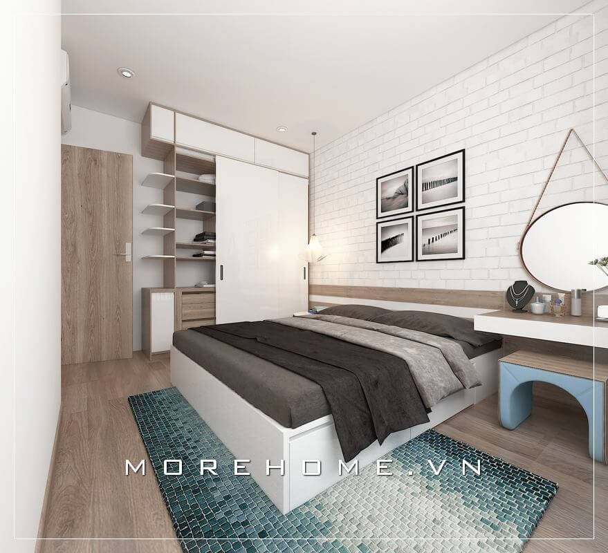 Tủ áo gỗ công nghiệp với lối thiết kế âm tường tạo cho không gian phòng ngủ thêm rộng thoáng hơn cả